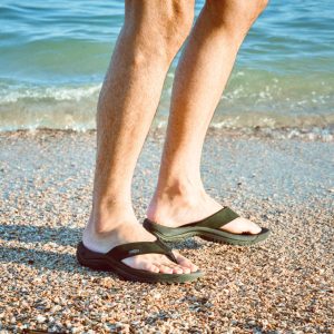 The ultimate travel flip. With more cushioning. arch support. traction for wet surfaces. and ethically sourced. waterproof leather.